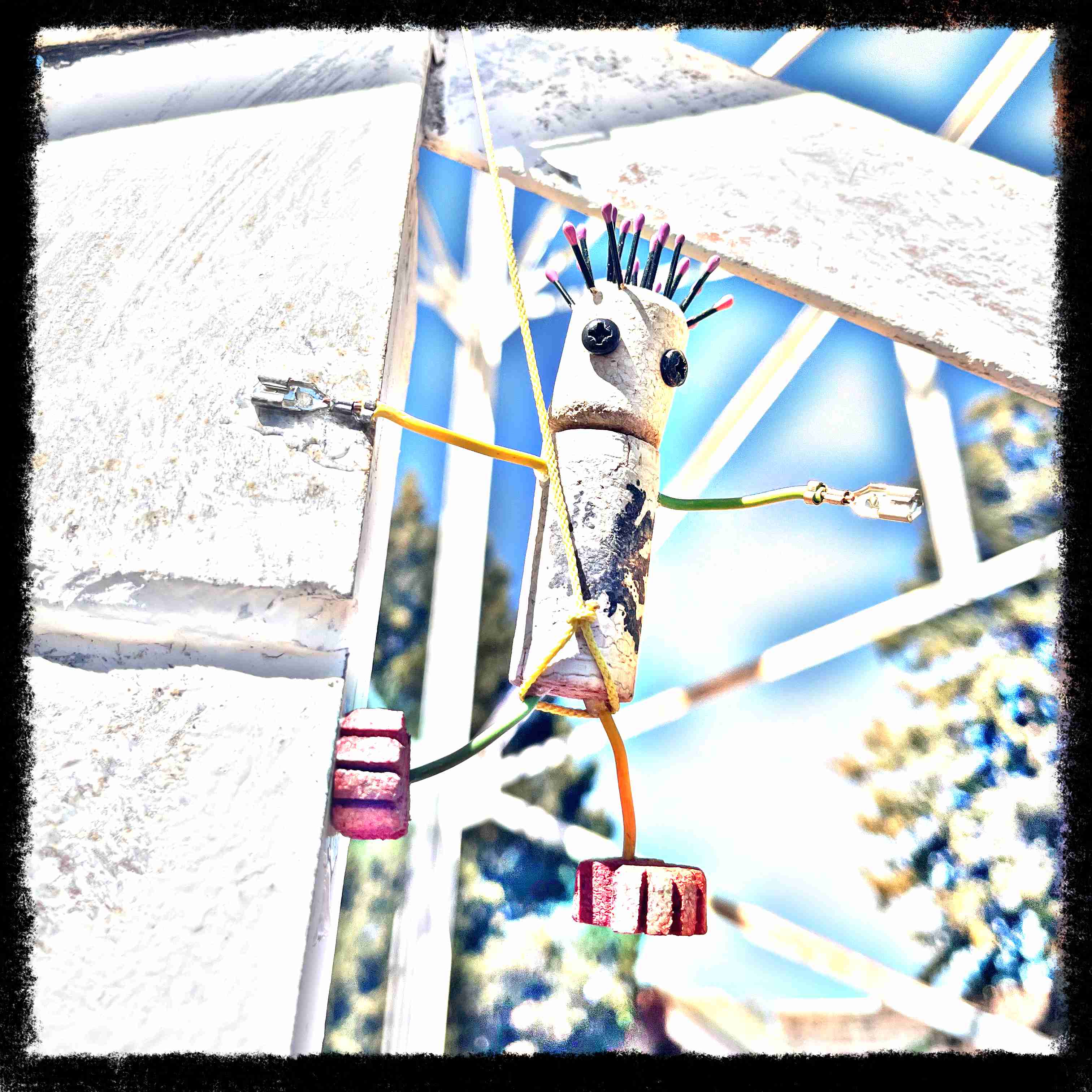 Flagstaff Incursion is now up and waiting for you to go out and participate! Funded by a grant from Flagstaff ArtX, you can go on an art treasure hunt to find the 21 figures around downtown Flagstaff, ending with a final treasure – a free sticker (on the left!), and available at AZ Handmade Gallery in downtown Flagstaff. ArtX weekend in Flagstaff is May 1-3, 2026, butIncursion! is installed and ready now if you you’re ready for the adventure. Click here for a custom Google map with installed locations to start your search. Don’t forget to look up!